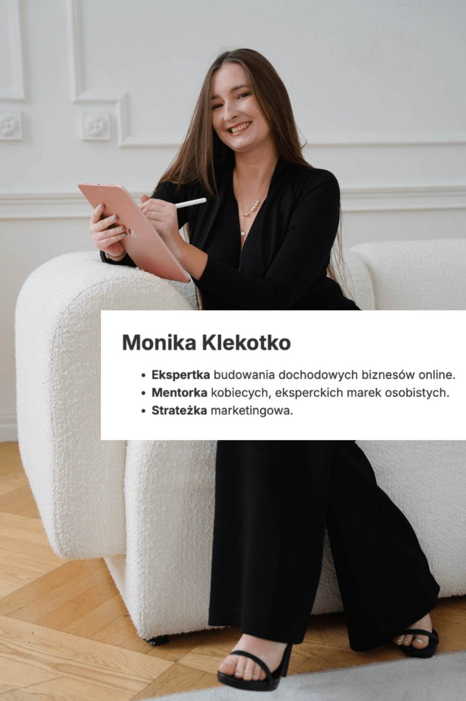 Pomogłam już dziesiątkom kobiet stworzyć ich ekspercką markę osobistą i zwiększyć sprzedaż w ich biznesach online. Dzięki temu dokładnie wiem z czym się mierzą moje klientki. Sama również od kilku lat tworzę i sprzedaję kursy online, które wygenerowały dla mnie miliony złotych przychodu. Teraz czas na Ciebie!